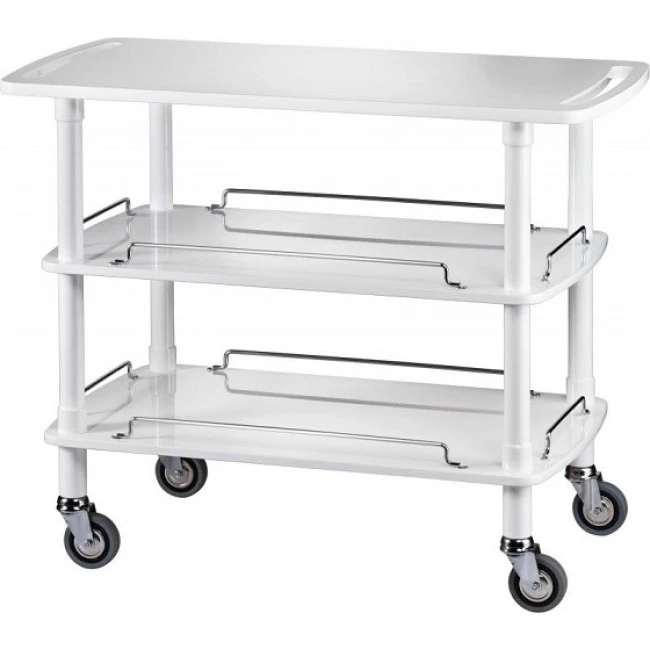 La Struttura del carrello di servizio è in legno massello, piani in multistrato di betulla colore Lucido Bianco.