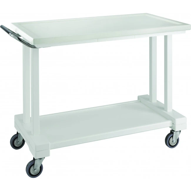 Carrelli di servizio in legno . Struttura in legno massello – ripiani in mobiliato di betulla – ruote multidirezionali cromate Ø 100 mm.