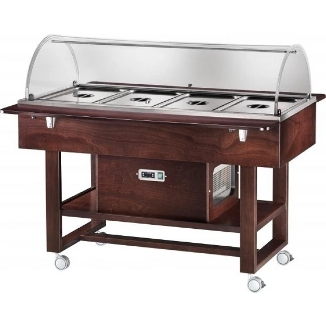 CARRELLI REFRIGERATI IN LEGNO CON CUPOLA IN PLEXIGLASS.
