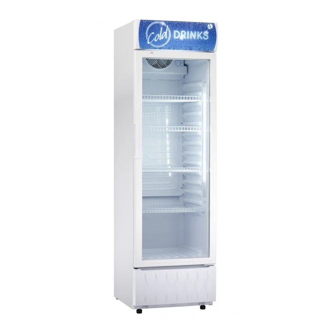 Espositore refrigerato per bibite dotato di struttura esterna in acciaio verniciato bianco ed interno in ABS bianco.