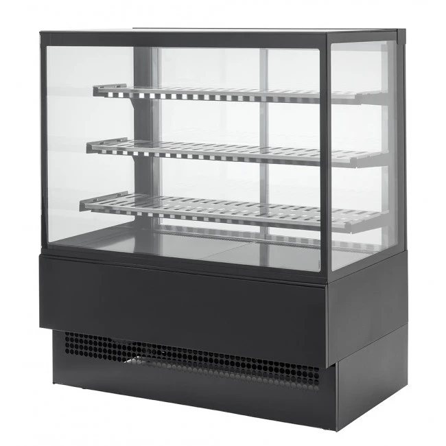 Espositore caldo con vetrocamera temperata dritta adatto ad esporre gastronomia, pasticceria, pane e pizza.